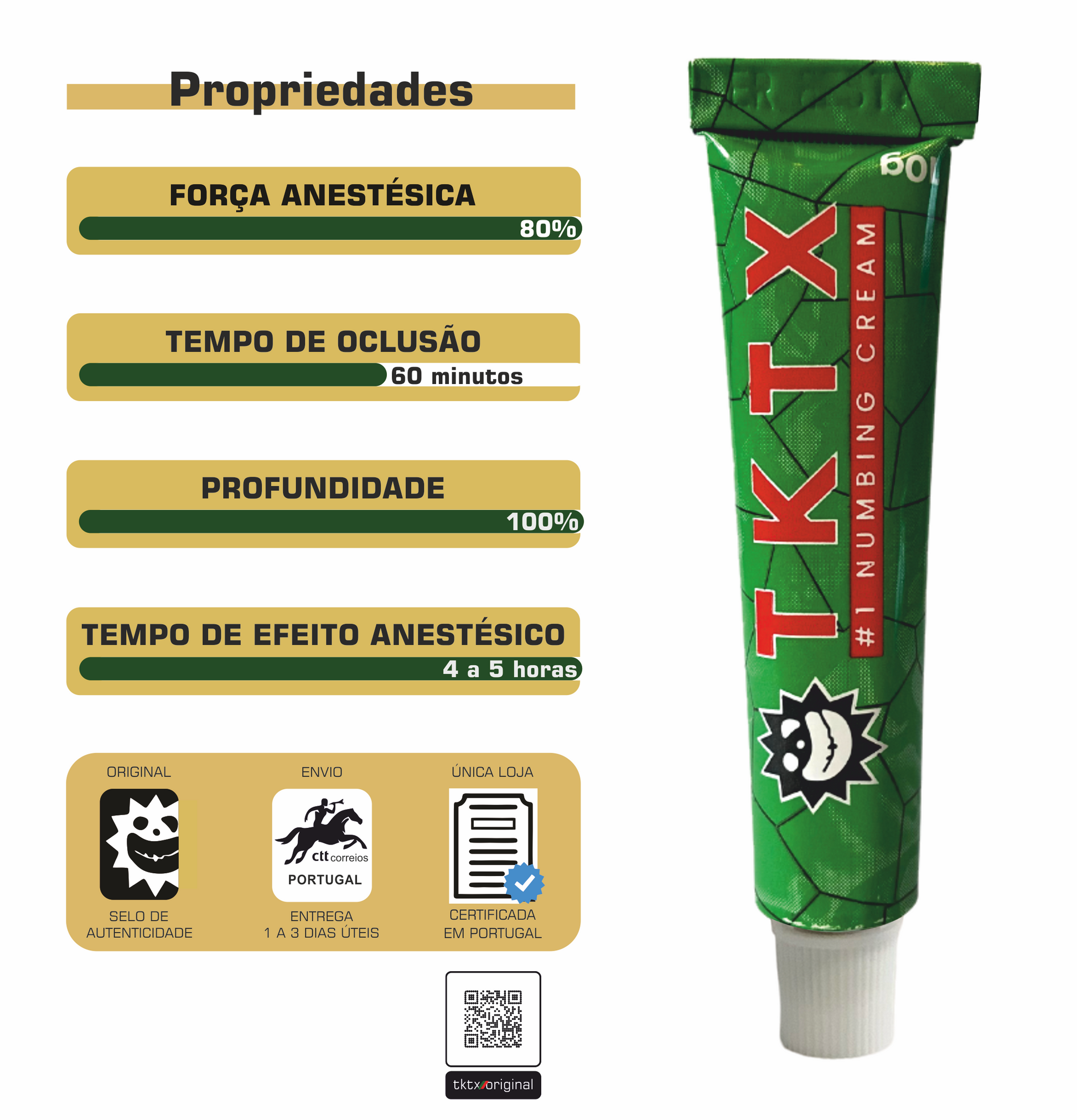 TKTX 80% é o anestésico tópico mais poderoso do mercado, com uma combinação única de lidocaína, epinefrina e vitamina E. Esta fórmula exclusiva garante que você possa desfrutar de uma experiência indolor durante os procedimentos estéticos, incluindo tatuagens, piercings, depilação a laser, microblading e muito mais. Com TKTX 80%, você pode relaxar e deixar os profissionais fazerem seu trabalho, sem se preocupar com dor ou desconforto. Adquira já a sua TKTX 80% e experimente a diferença!